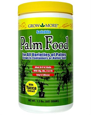 Grow More® Soluble Palm Food 15-5-15 is formulated for all palms with extra magnesium and acid forming ingredients they need for strong roots, disease resistance, and green leaves.