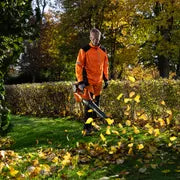 Husqvarna 530iB is a powerful, highly efficient battery-powered blower. It is equipped with an efficient brushless motor that enables low energy consumption and increased runtime. The lightweight, compact, and well-balanced design makes it suitable for full-time professional use, and the low noise level allows you to work in public, noise sensitive environments. When extra blowing power is needed, the boost function can easily be activated. The cruise control function allows you to set a fixed blowing speed to work continuously without adjustments and focus solely on removing leaves and debris. Cruise control can also be activated in boost mode. 530iB is part of the flexible Husqvarna BLi-X 36V battery system. Battery and charger not included.